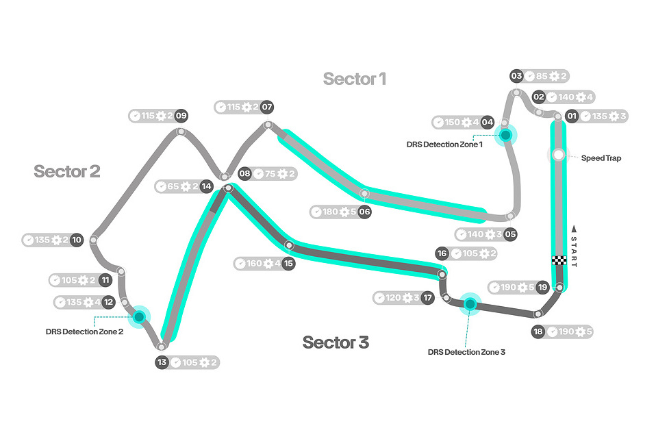 Ο χαρακτήρας stop/start, με συνεχείς επιταχύνσεις, σημαίνει ότι η πίστα έχει ένα από τα μεγαλύτερα fuel effects της χρονιάς. Δηλαδή, κάθε επιπλέον κιλό καυσίμου κοστίζει περισσότερο σε χρόνο γύρου σε σχέση με άλλες πίστες.