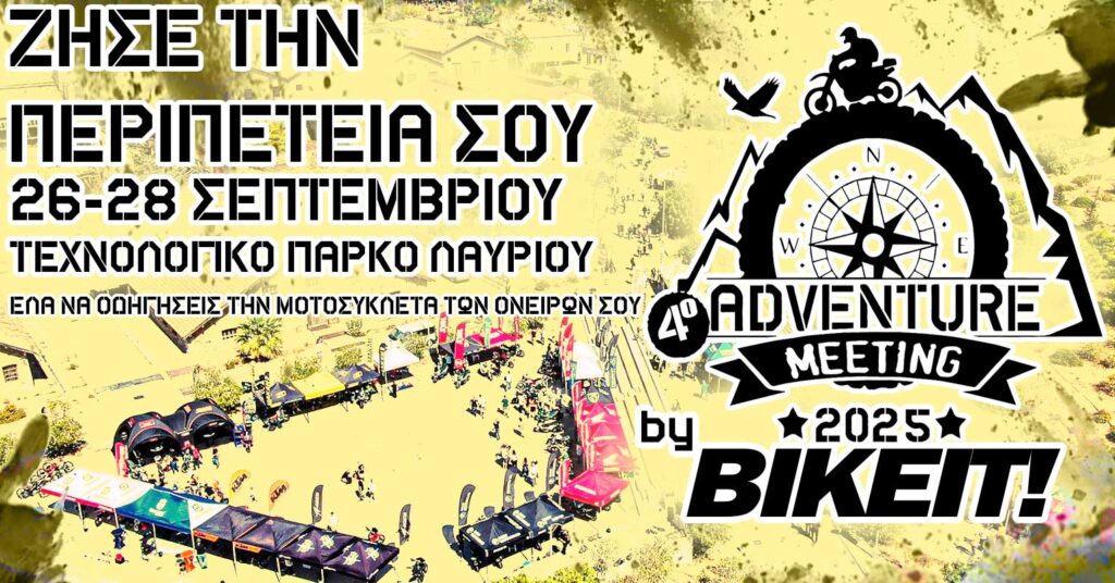Tο κορυφαίο μοτοσυκλετιστικό της χρονιάς, το Adventure Meeting, ανοίγει ξανά τις πύλες του και σας περιμένει το τελευταίο σαββατοκύριακο του Σεπτεμβρίου, για μία εμπειρία από νέα μοντέλα, αξεσουάρ, παράλληλες δραστηριότητες, και φυσικά ατελείωτα test rides! Το όραμά μας και η αγάπη μας για τη Μοτοσυκλέτα στο κορυφαίο μοτοσυκλετιστικό γεγονός της χρονιάς: Το 4ο Adventure Meeting. Το μεγαλύτερο test-ride event της χρονιάς επανέρχεται και σας κλείνει ραντεβού στο Τεχνολογικό Πάρκο Λαυρίου, το τελευταίο σαββατοκύριακο του Σεπτεμβρίου. Σε έναν χώρο ιστορικής σημασίας, για μία μοναδική εμπειρία δράσης και περιπέτειας.