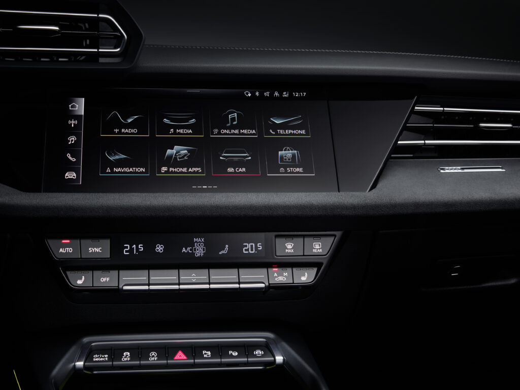 Στο A3 Allstreet TFSIE, η τεχνολογία δεν είναι απλώς ένα στοιχείο εξοπλισμού, αλλά ο πυρήνας ενός ολοκληρωμένου ψηφιακού οικοσυστήματος που βρίσκεται στη διάθεση του οδηγού και των επιβατών. Ο ψηφιακός πίνακας οργάνων, με την άψογη ευκρίνεια και τις δυνατότητες παραμετροποίησης, προσφέρει όλες τις απαραίτητες πληροφορίες με μια ματιά, από τα δεδομένα οδήγησης και πλοήγησης μέχρι τις ειδικές ενδείξεις για την υβριδική λειτουργία, όπως το επίπεδο φόρτισης της μπαταρίας και η ροή ενέργειας. Η κεντρική οθόνη του συστήματος infotainment, με την άμεση απόκριση και τα ευανάγνωστα γραφικά, λειτουργεί ως το κέντρο ελέγχου για όλες τις λειτουργίες. Η συνδεσιμότητα με smartphones μέσω Apple CarPlay και Android Auto είναι απρόσκοπτη και διευκολύνει την πρόσβαση σε όλες τις αγαπημένες εφαρμογές.