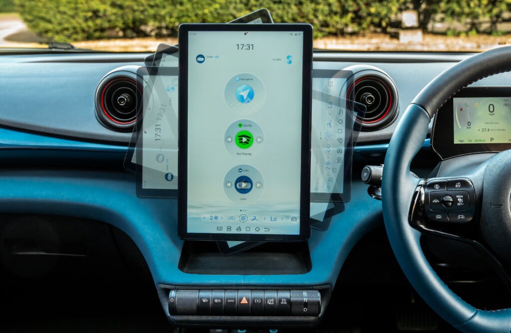 Αν το εξωτερικό είναι ευχάριστο, το εσωτερικό είναι το σημείο όπου το Dolphin κερδίζει τις εντυπώσεις με το καλημέρα. Το βλέμμα πέφτει αμέσως στη μεγάλη οθόνη αφής 12,8 ιντσών, η οποία έχει την ιδιαιτερότητα να περιστρέφεται ηλεκτρικά σε κάθετη ή οριζόντια θέση, ανάλογα με τις ανάγκες του οδηγού. Το infotainment είναι πλούσιο, με ταχύτατη απόκριση, πλοήγηση με χάρτες, ασύρματο Apple CarPlay και Android Auto και πολυάριθμες εφαρμογές. Μπροστά από τον οδηγό υπάρχει ένας μικρός ψηφιακός πίνακας οργάνων, ενώ η έκδοση Design διαθέτει και head-up display, κάτι σπάνιο για την κατηγορία.