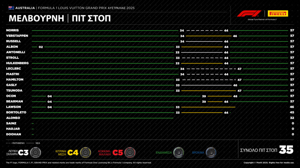 «Ταιριαστή έναρξη για την 75η σεζόν της Formula 1! Σε διάστημα μόλις εκατό λεπτών περίπου, βιώσαμε τόσα πολλά συναισθήματα με το αποτέλεσμα να κρέμεται από μια κλωστή μέχρι τον τελευταίο γύρο, όχι μόνο για τη νίκη, αλλά και για τις άλλες θέσεις της δεκάδας. Από καθαρά τεχνική άποψη, σήμερα μπορέσαμε να δούμε πώς συμπεριφέρεται η φετινή έκδοση των ενδιάμεσων ελαστικών. Αποδείχτηκε ότι είναι ένα ελαστικό που επιτρέπει στους οδηγούς να πιέσουν στο όριο, για πολλούς γύρους ακόμη και σε μια πίστα όπου είχε εμφανιστεί στεγνή αγωνιστική γραμμή. Υπήρξε μόνο λίγη παραμόρφωση λόγω τοπικής υπερθέρμανσης στο μπροστινό αριστερό ελαστικό που δέχεται τη μεγαλύτερη καταπόνηση σε αυτή την πίστα, αλλά γενικά, είδαμε ότι η φθορά ήταν ελάχιστη. Δεν υπάρχουν πολλά να πούμε για τα στεγνά ελαστικά, επειδή οι γύροι που χρησιμοποιήθηκαν ήταν λίγοι – από 10 έως 14 – πράγμα που σημαίνει ότι είναι δύσκολο να δοθεί μια πλήρης αξιολόγηση της απόδοσής τους. Τώρα, μαζί με τις δέκα ομάδες του πρωταθλήματος, προετοιμαζόμαστε για τον δεύτερο γύρο της σεζόν, την επόμενη εβδομάδα στη Σαγκάη. Είναι μια πολύ διαφορετική πίστα από τη Μελβούρνη, όπου θα βρούμε ένα ολοκαίνουργιο οδόστρωμα σ’ ένα Σαββατοκύριακο με πρόγραμμα Sprint, οπότε αντιμετωπίζουμε μια επιπλέον πρόκληση από τον δεύτερο αγώνα κιόλας».