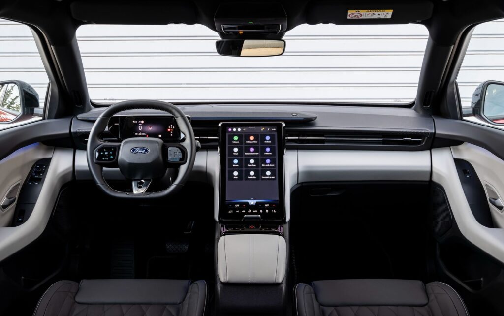 Η εικόνα στο εσωτερικό είναι απόλυτα σύγχρονη. Η μεγάλη κάθετη οθόνη στο κέντρο του ταμπλό συγκεντρώνει τις περισσότερες λειτουργίες, με το σύστημα πολυμέσων να προσφέρει καλή απόκριση και ξεκάθαρη δομή μενού. Η ποιότητα κατασκευής κινείται σε καλό επίπεδο, με σωστή συναρμογή και υλικά που δείχνουν ανθεκτικά στη χρήση. Η θέση οδήγησης είναι σωστά μελετημένη, με επαρκές εύρος ρυθμίσεων για το κάθισμα και το τιμόνι. Η ορατότητα προς τα εμπρός και στα πλάγια είναι καλή, ενώ προς τα πίσω περιορίζεται ελαφρώς από τη σχεδίαση της οροφής. Τα συστήματα υποβοήθησης και οι κάμερες διευκολύνουν τους ελιγμούς και καλύπτουν αποτελεσματικά αυτό το σημείο.