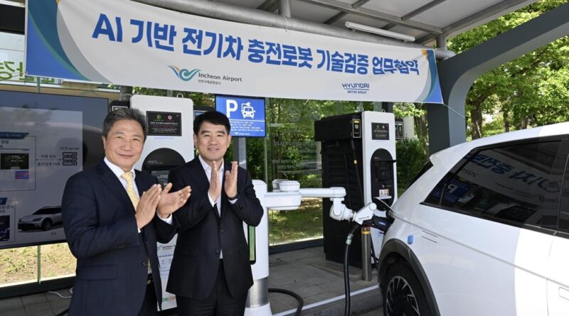 Η συνεργασία του Hyundai Motor Group με την Incheon International Airport Corporation (IIAC) αξιοποιεί την προηγμένη ρομποτική και την τεχνητή νοημοσύνη για τη βελτιστοποίηση της φόρτισης ηλεκτρικών οχημάτων (EV) και την εξυπηρέτηση της αυξημένης κίνησης μετά τη μετατροπή του «Incheon Airport 4.0 Era» σε Aviation AI Innovation Hub. Στόχος των εταίρων είναι να καταστήσουν το Διεθνές Αεροδρόμιο Incheon πρότυπο καινοτομίας και αποδοτικότητας στις βιώσιμες μεταφορές, παρέχοντας απρόσκοπτη και ασφαλή φόρτιση EV.