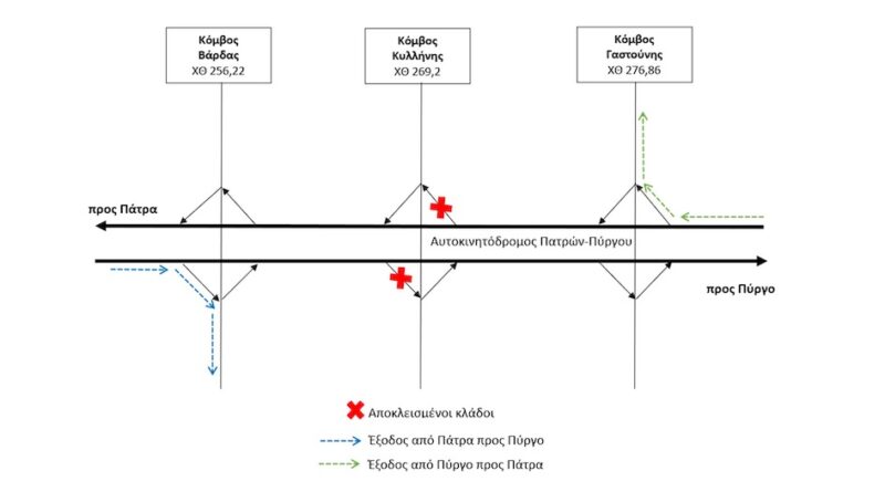 Κλείνουν προσωρινά οι έξοδοι του Κόμβου Κυλλήνης στον νέο αυτοκινητόδρομο Πάτρας – Πύργου