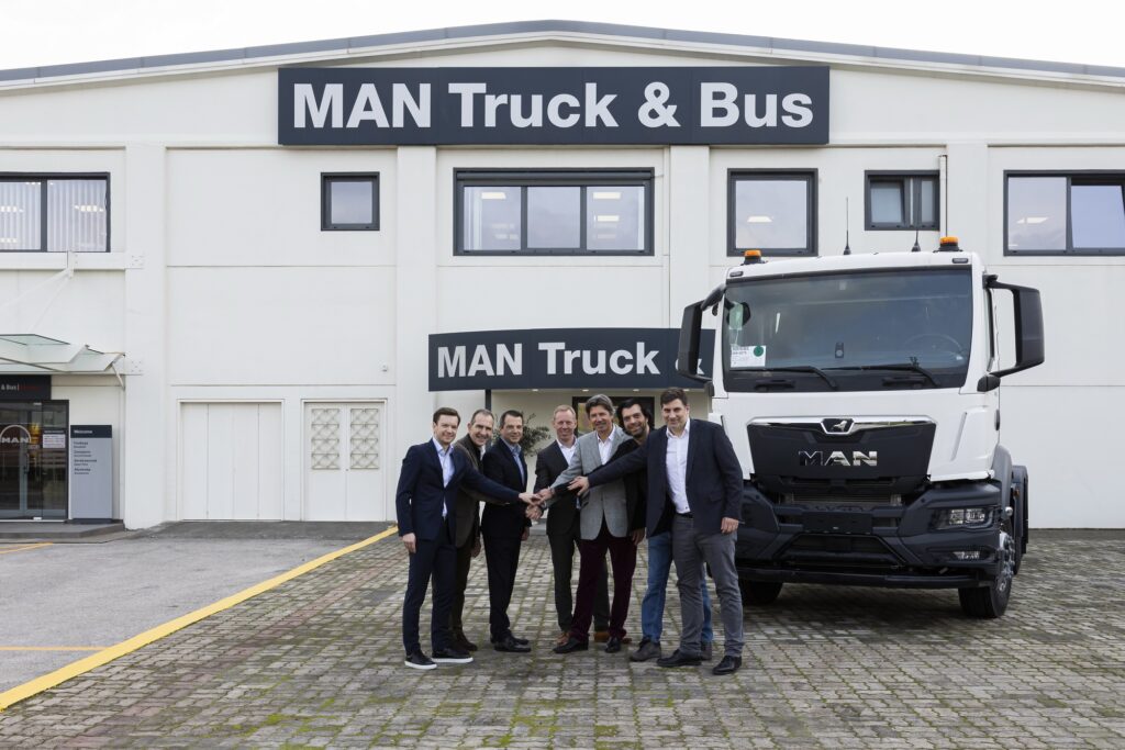 Η τελετή παράδοσης παραλαβής της MAN Truck & Bus στην KOSMOCAR A.E. έλαβε χώρα στην έδρα της MAN στον Ασπρόπυργο και παραβρέθηκαν στελέχη της MAN SE και της Kosmocar.
