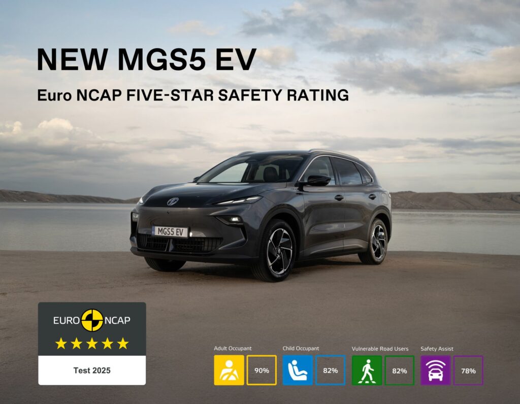 Το ολοκαίνουργιο MGS5 EV, το οποίο θα αφιχθεί στην ευρωπαϊκή αγορά το φθινόπωρο και στην Ελληνική αγορά αναμένεται από τον ερχόμενο Σεπτέμβριο, κατάφερε να αποσπάσει τη μέγιστη δυνατή διάκριση ασφαλείας, κατακτώντας 5 αστέρια στη δοκιμή του οργανισμού Euro NCAP, επιβεβαιώνοντας με τον πιο εκκωφαντικό τρόπο τη δέσμευση της MG στην υπεύθυνη και πρωτοποριακή αυτοκίνηση, στην οποία η κορυφαία ασφάλεια είναι θεμελιώδης αρχή.