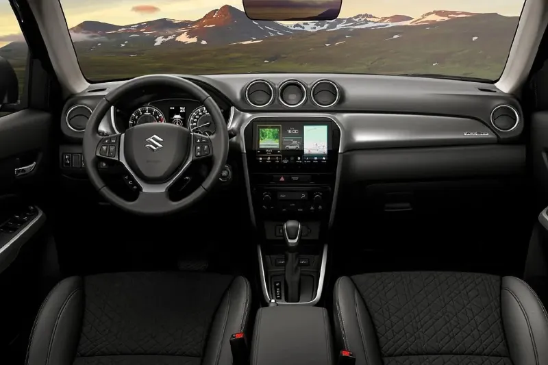 Περνώντας στο εσωτερικό, η εικόνα είναι γνώριμη αλλά σαφώς πιο τεχνολογικά προηγμένη. Η μεγαλύτερη αναβάθμιση αφορά τη νέα οθόνη αφής 9 ιντσών που δεσπόζει στο κέντρο του ταμπλό. Πρόκειται για ένα σύστημα που είναι πιο γρήγορο, με καλύτερα γραφικά και, το κυριότερο, προσφέρει ασύρματη συνδεσιμότητα με Apple CarPlay και Android Auto, λύνοντας τα χέρια του οδηγού που θέλει να χρησιμοποιεί τις εφαρμογές του κινητού του χωρίς καλώδια. Επιπλέον, η ενσωμάτωση των υπηρεσιών Suzuki Connect επιτρέπει στον ιδιοκτήτη να παρακολουθεί την κατάσταση του αυτοκινήτου του από απόσταση, να το εντοπίζει σε ένα γεμάτο πάρκινγκ ή να δέχεται ειδοποιήσεις για τη συντήρησή του, φέρνοντας το Vitara πλήρως στη ψηφιακή εποχή. Η εργονομία παραμένει ένα από τα ισχυρότερα χαρτιά του μοντέλου, με τη διατήρηση των φυσικών διακοπτών για τον κλιματισμό κάτω από την οθόνη, μια επιλογή που χαιρετίζουμε καθώς επιτρέπει τον χειρισμό τους χωρίς να αποσπάται η προσοχή από τον δρόμο. Τα καθίσματα προσφέρουν καλή πλευρική στήριξη και είναι άνετα ακόμα και σε πολύωρα ταξίδια, ενώ η θέση οδήγησης παραμένει εποπτική, δίνοντας στον οδηγό αυτή την αίσθηση ασφάλειας που αναζητά κανείς από ένα SUV.