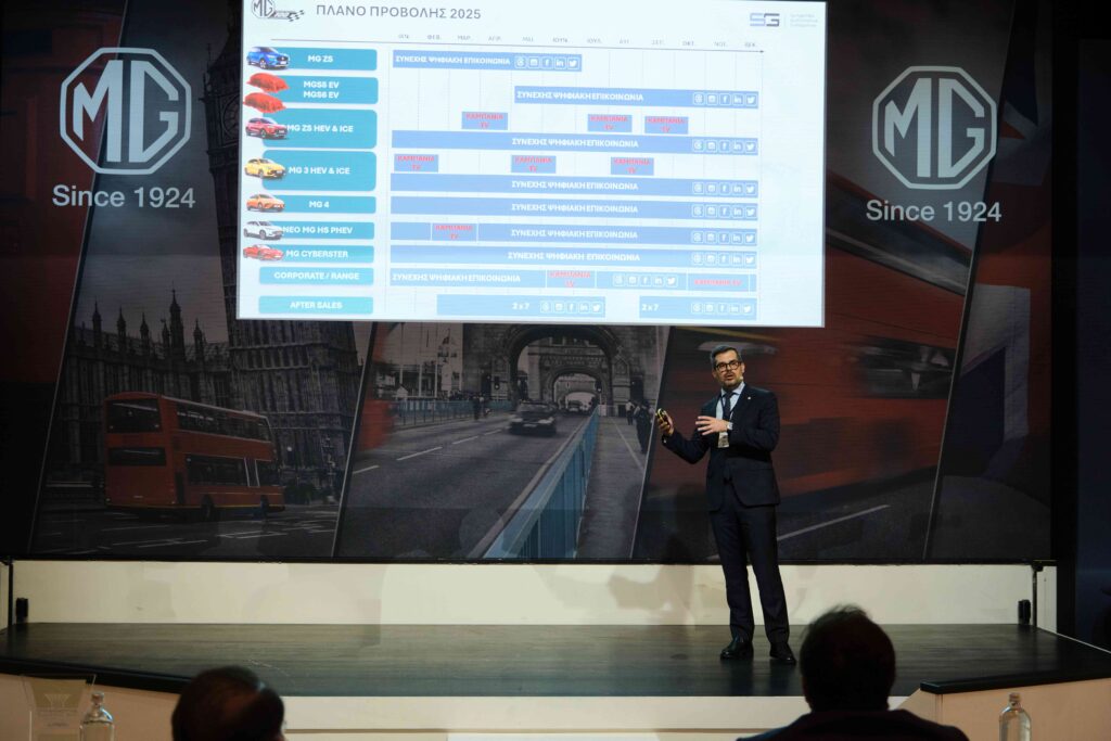 Μετά τον χαιρετισμό του Προέδρου και Διευθύνοντος Συμβούλου του Ομίλου Συγγελίδη, κ. Πολυχρόνη Συγγελίδη, το λόγο πήρε για τα περαιτέρω ο Αναπληρωτής Διευθύνων Σύμβουλος του Ομίλου Συγγελίδη και Γενικός Διευθυντής της MG, κ. Δημήτρης Καββούρης παρουσιάζοντας τα αξιοθαύμαστα εμπορικά αποτελέσματα της προηγούμενης χρονιάς, όσο και το στρατηγικό πλάνο του 2025, που στόχο έχει η Μάρκα να τοποθετηθεί στις πρώτες θέσεις της κατάταξης των πωλήσεων στη χώρα μας.
