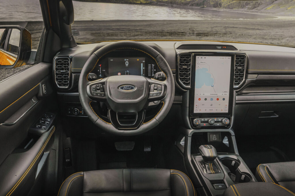 Η καμπίνα του νέου Ranger Plug-In Hybrid ξεχωρίζει με την κεντρική οθόνη αφής 12 ιντσών, που συγκεντρώνει λειτουργίες όπως πλοήγηση, ήχο και κλιματισμό σε ένα σύγχρονο, φιλικό περιβάλλον. Η έκδοση Stormtrak διαθέτει καινοτόμο κινούμενη αεροτομή με πτυσσόμενη βάση και μπάρες, δημιουργώντας επίπεδη επιφάνεια για μεταφορά μακριών αντικειμένων, από σωλήνες έως SUP. Στηρίζεται στο ανθεκτικό πλαίσιο και το εξελιγμένο σύστημα τετρακίνησης, προσφέροντας τις εκτός δρόμου δυνατότητες που περιμένει κανείς από ένα Ranger. Με το 90% των ιδιοκτητών να χρησιμοποιούν το όχημα για ρυμούλκηση, το νέο Plug-In Hybrid ενισχύει περαιτέρω αυτή τη χρήση με την τεχνολογία Trailer Backup Assist: ο οδηγός κατευθύνει το τρέιλερ με έναν περιστροφικό διακόπτη, χωρίς να ακουμπά το τιμόνι.